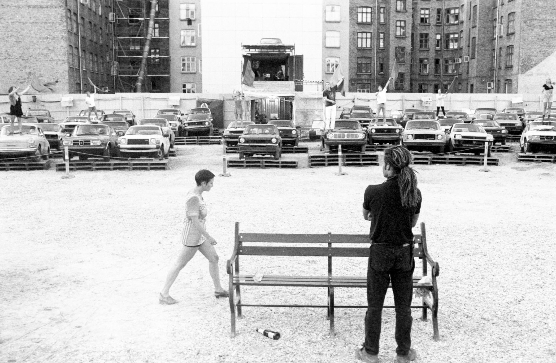 Skrot in Bio - drive-in bio for de billøse i Nansesgade i København den 16-31 juli 1994.